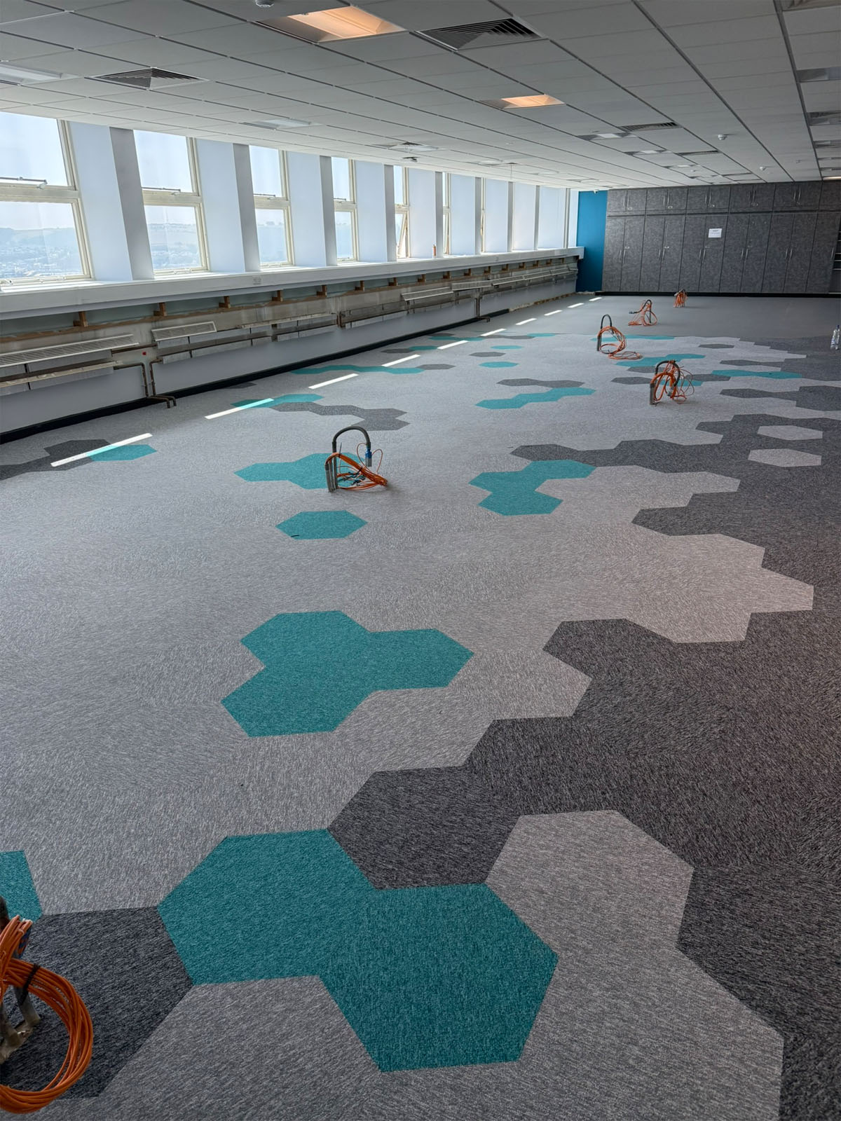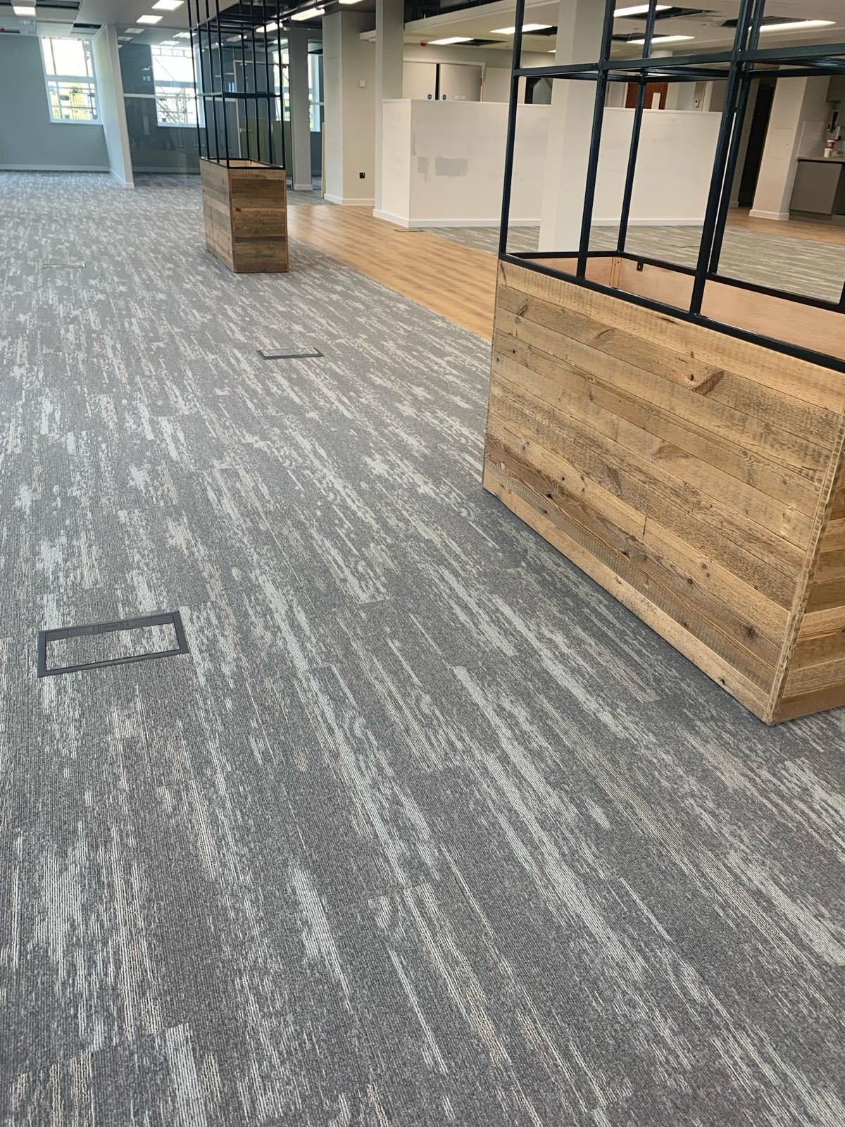 Carpet tile installation has many advantages for businesses. Firstly carpet tiles are highly durable and can withstand heavy foot traffic and daily wear and tear. Fitting carpet tiles can also contribute to a quieter work environment due to the sound-absorbing properties of carpet tiles; this can further improve concentration within the office.